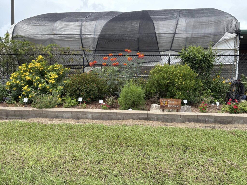 The Deer Resistant Area by Victoria Educational Gardens Greenhouse has a new sign thanks to MG, Kathy Chilek! This area which is outside the fence is maintained by master gardeners with Betty Friedrichs.