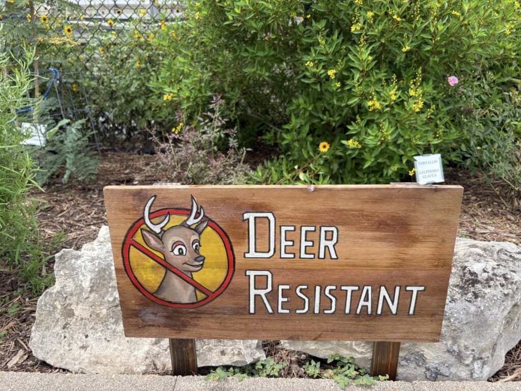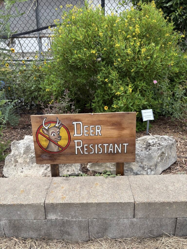 Take a trip out to VEG and read the markers to see which plants have been successfully deer resistant. Many of them are Texas Superstar plants such as Thryallis, Pride of Barbados, Hamelia Hummingbird Bush also called Firebush, and Esperanza.